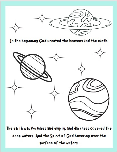 Step into the timeless narrative of creation with our exquisite Bible Story Coloring Book: The Creation. Delve into the awe-inspiring account of how the universe, Earth, and all life came into existence through beautiful illustrations waiting for your children's artistic touch.
